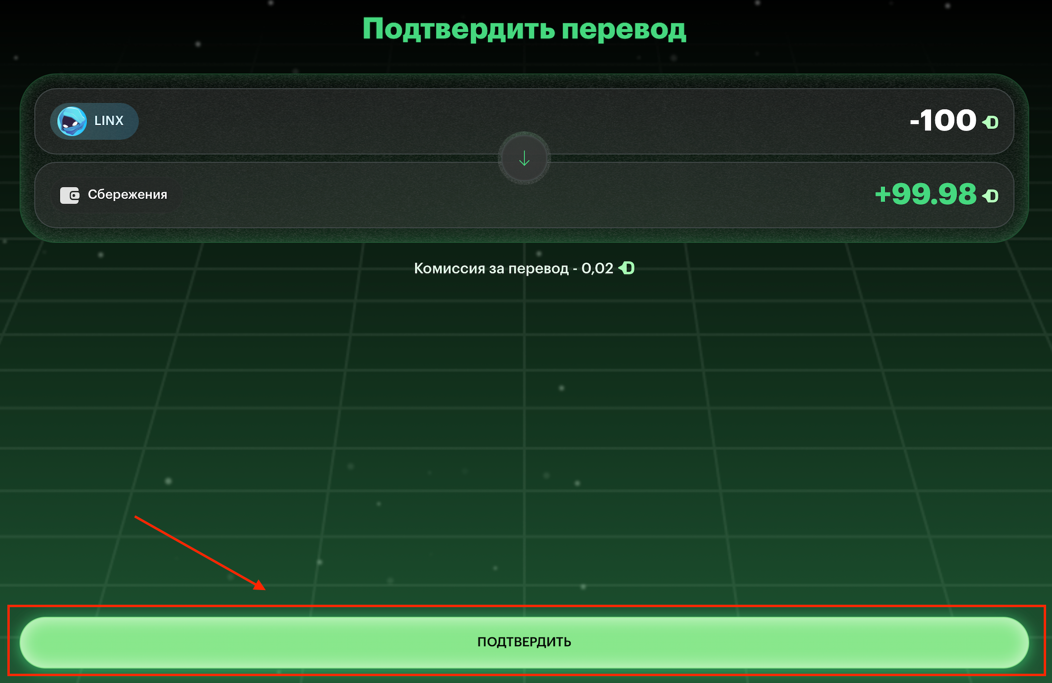 A fee is charged for each profit fixation operation. This amount is accounted for when confirming the transfer.