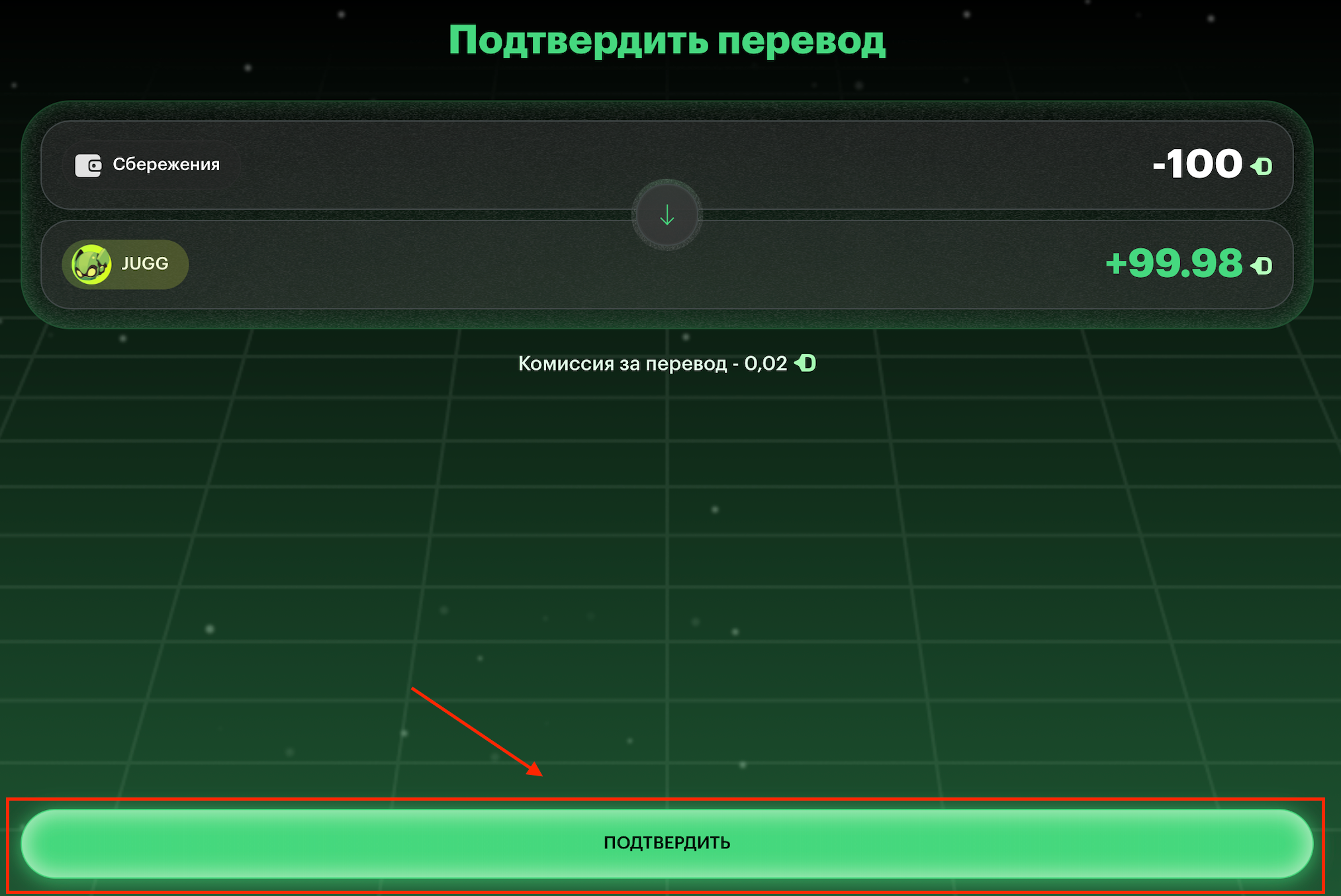 The system will show the transfer details: deduction from "Savings", crediting to the robot's account, and the fee (0.02 USDT).