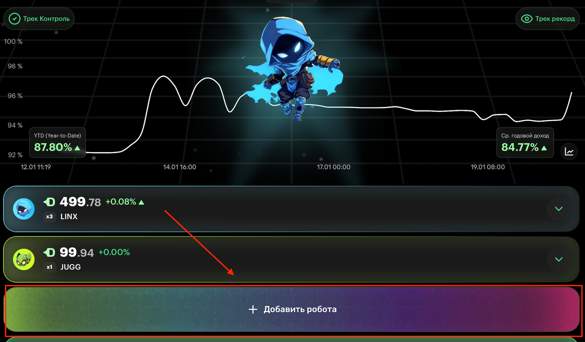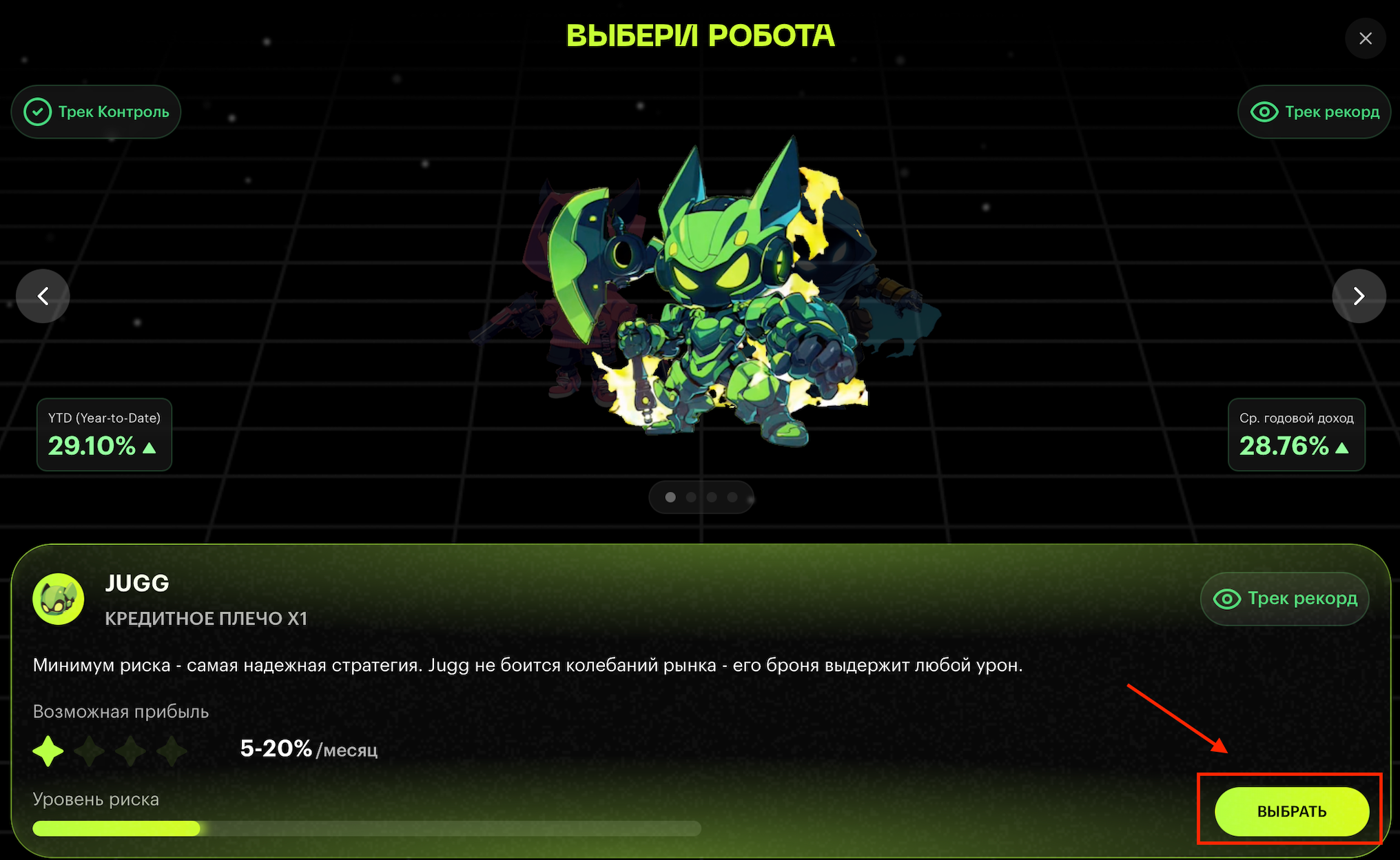 πΈ Funds on the robot β Money allocated to a robot is not available for withdrawal until it is stopped. πΈ Changing the amount β You can add or partially withdraw funds from a robot at any time via the strategy settings. πΈ Stopping the robot β You can stop a robot at any moment, after which the funds will return to the "Savings" section.